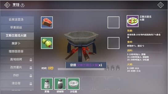 在《剑之荣耀》烹饪玩法里,可以一次性满足你的厨艺、吃饭、装X...